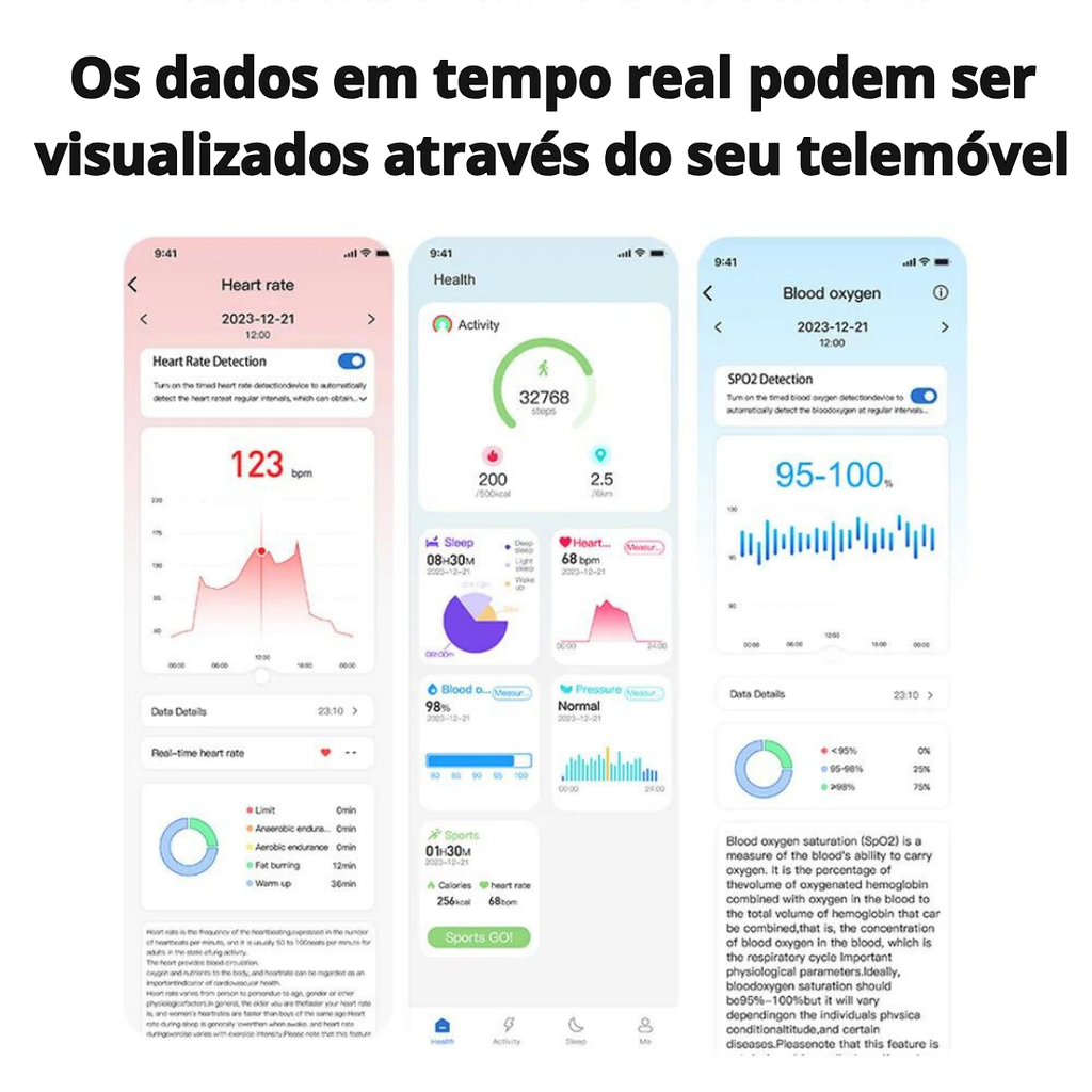🩸 Medição de Oxigénio no Sangue: Vigia os teus níveis de oxigénio para um estado ótimo de saúde.