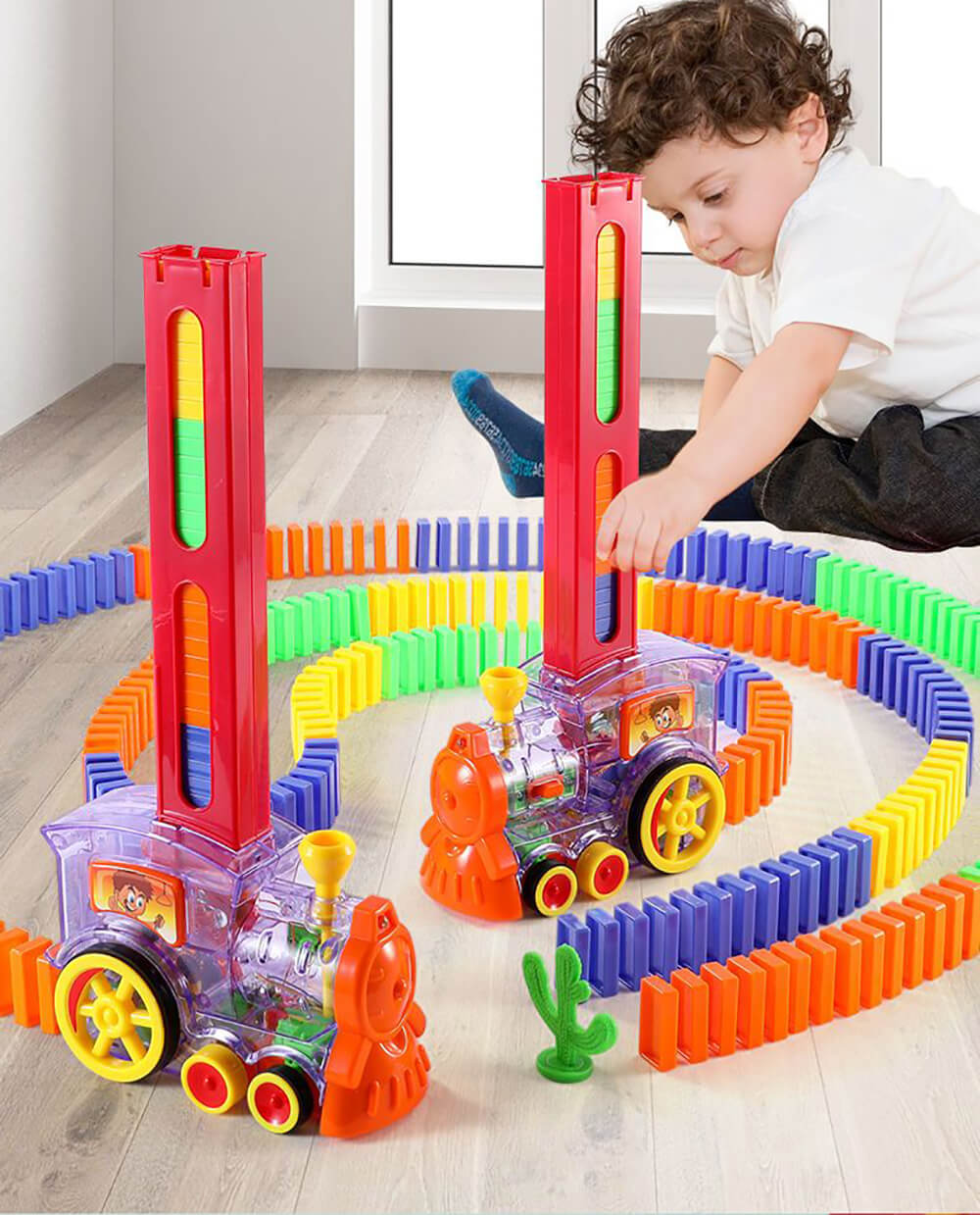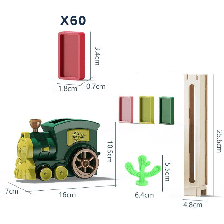 - Liberação Automática de Dominó: A medida que o comboio avança, ele vai enfileirando automaticamente blocos de dominó.