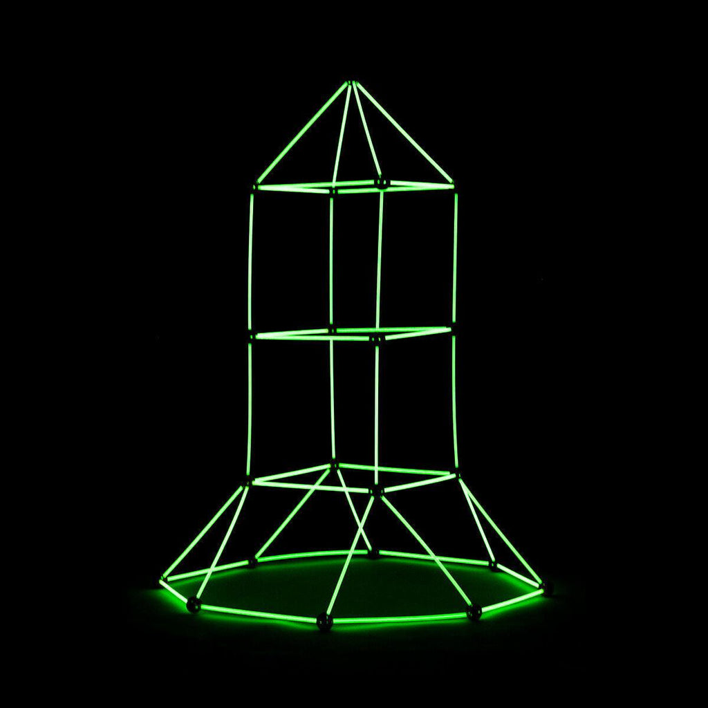 Este kit de construção de forças para crianças de 155 peças permite que os pequenos desenvolvam sua imaginação e montem uma infinidade de estruturas que brilham na escuridão. Inclui tampa de tela e bolsa de transporte. Apto para maiores de 3 anos.
