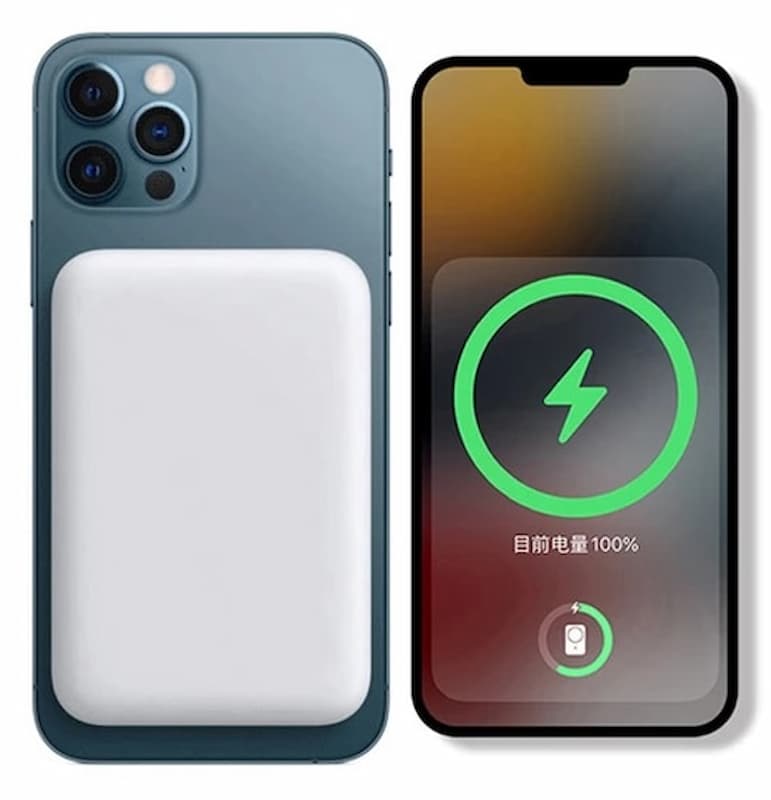 Basta acoplares o powerbank na parte traseira do iPhone e ele começará a carregar automaticamente.