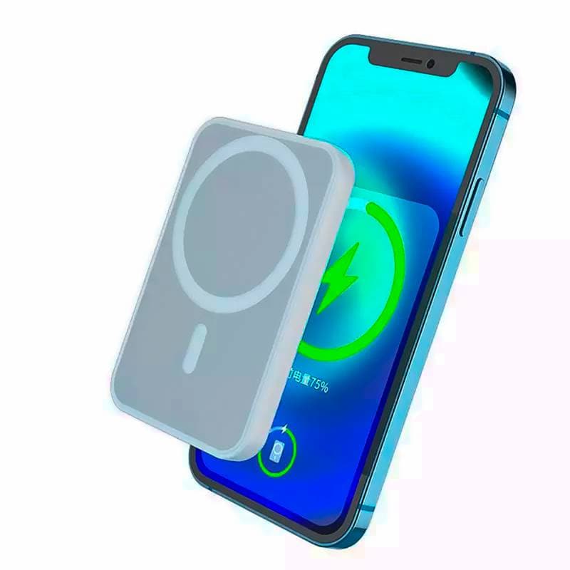 O Powerbank Magsafe 5000 mAh é uma bateria externa portátil que se acopla perfeitamente ao teu iPhone.